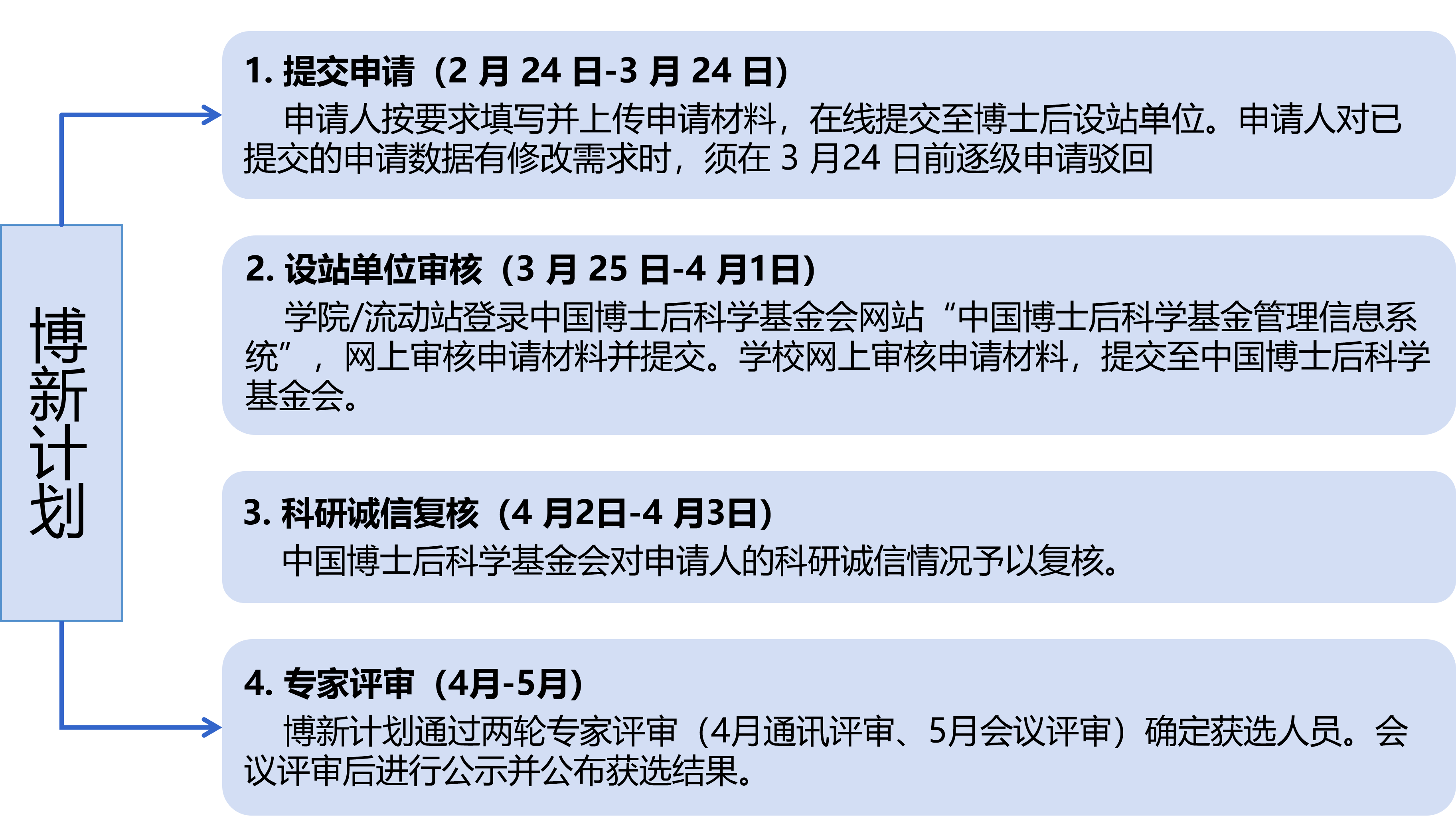 7.新近进站的博士后研究人员须为2025年3月1日(含)之后进站的人员,且本站博士后研究期间未申报过博新计划,未获得过国资计划B、C档单位推荐;须依托所在博士后科研流动站、工作站进行申请。