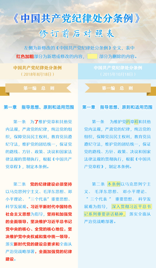 《中国共产党纪律处分条例》修订前后对照表